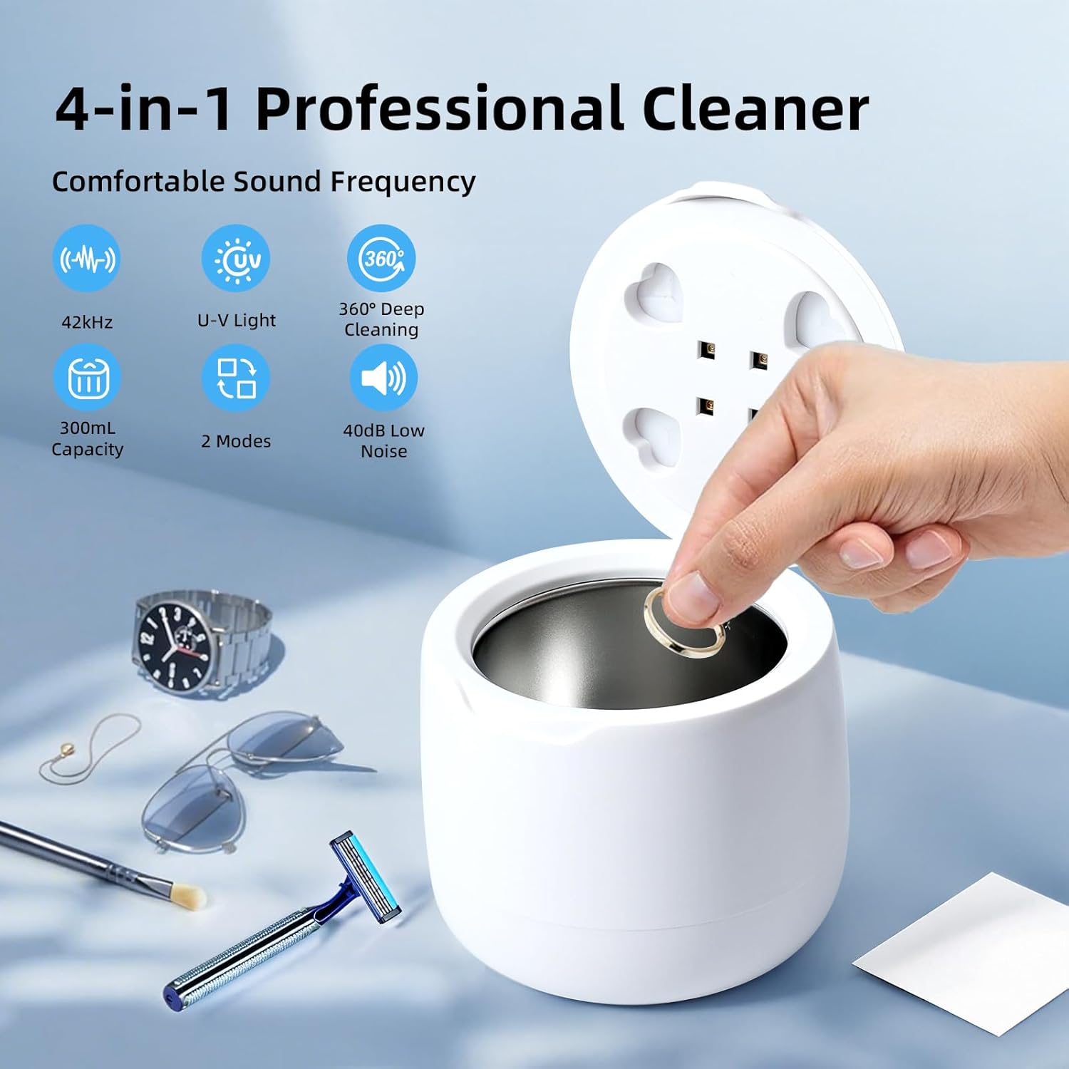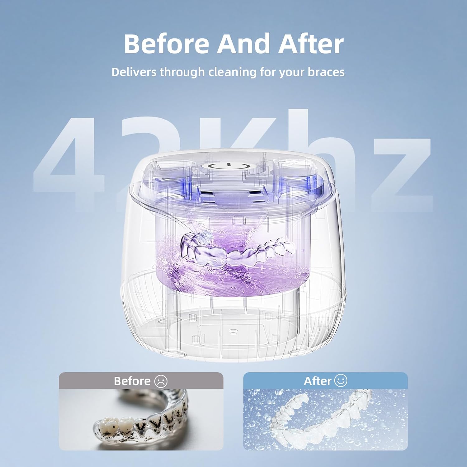- 【42kHz Deep Cleaning Technology】Powerful 42,000Hz ultrasonic waves create microscopic bubbles that penetrate every crevice to thoroughly clean retainers, aligners, and jewelry.